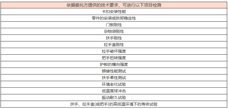 自汽车问世,它推动了经济繁荣,改变了人们的生活方式。同时,人们也越来越重视汽车的安全性、美观性,及舒适性,而这与汽车内饰件、外饰件的性能质量,密切相关。检测项目汽车仪表板(包括各种附件,杂物盒、烟灰缸、出风口、横梁等):汽车副仪表板(包括各种附件,如烟灰缸、杯托、出风口等):汽车门板:汽车保险杠:汽车内