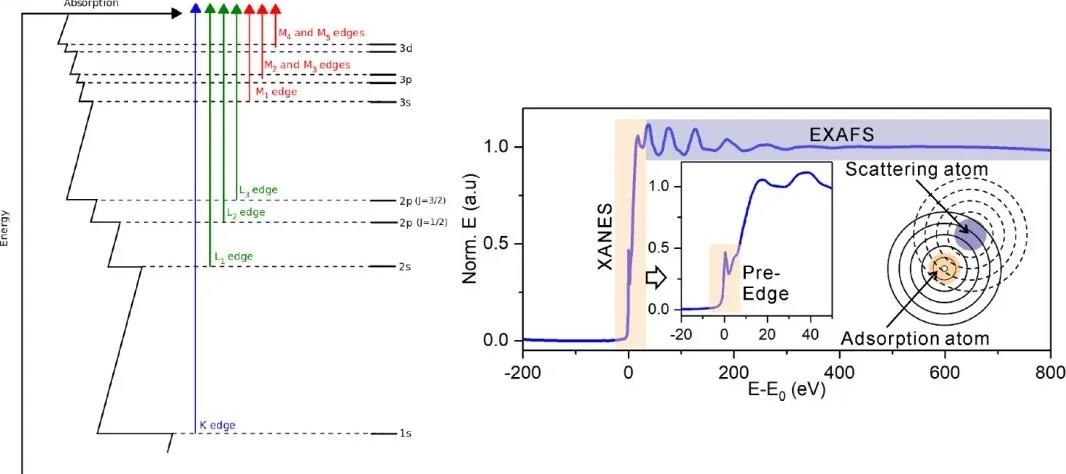 介绍同步辐射吸收谱,也称X射线吸收精细结构(X-ray absorption fine structure,XAFS),一般用于反应样品中单个元素的价态情况、单个原子的配位环境、单个吸收原子的电子结构(轨道跃迁、杂化),是一种微观的、结构性判断的测试。测试元素一般是金属元素(硬线)或者原子序数较小的非金属元素如C、N、O(软线)。是一种基